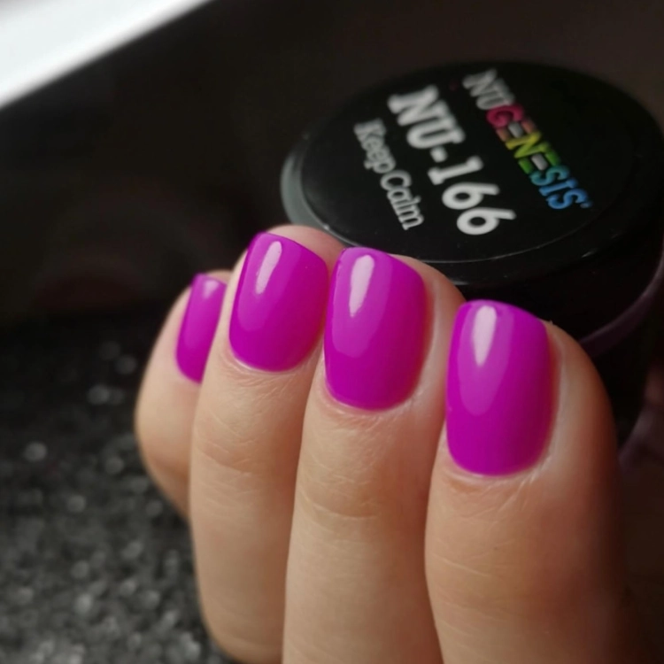 Nugenesis NU-166 Keep Calm to intensywny, energetyczny odcień fuksji, który dodaje stylizacji charakteru i świeżości. Ten kolor został stworzony z myślą o nowoczesnym manicure tytanowym, który ma być wyrazisty, ale jednocześnie elegancki i dopracowany.