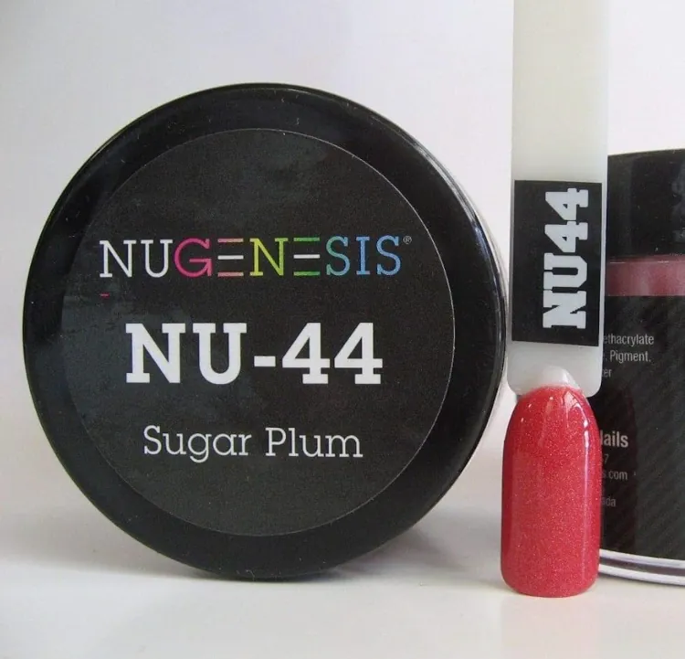 Odkryj puder do manicure NuGenesis NU-44 Sugar Plum! Ten subtelny, czerwony puder z delikatnymi drobinkami nada Twoim paznokciom wyjątkowego blasku. Idealny do tworzenia eleganckich i trwałych zdobień manicure.