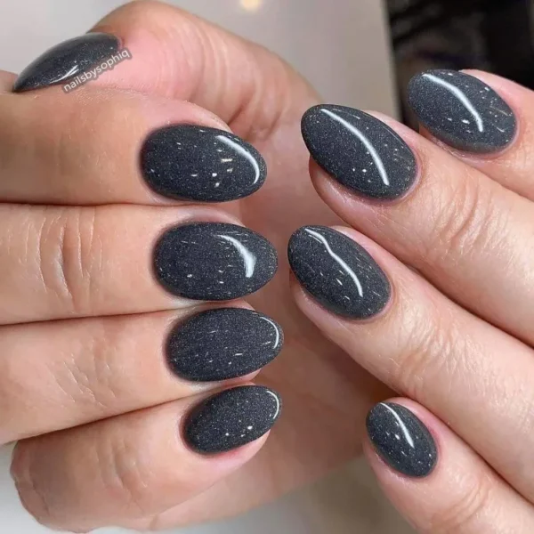 - Głęboki, ciemny kolor z delikatnymi srebrnymi drobinkami.